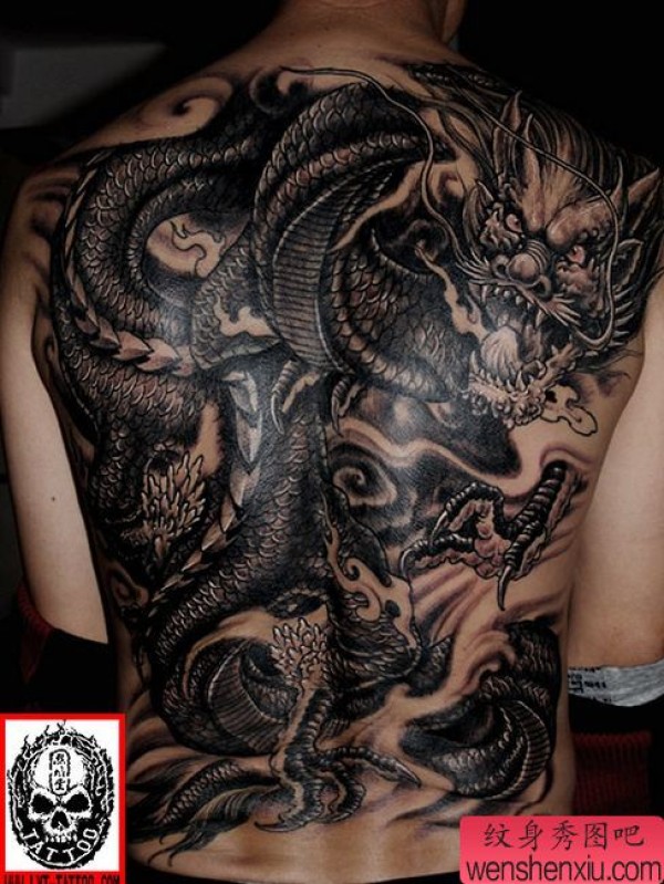 男士喜欢的满背龙纹身图案