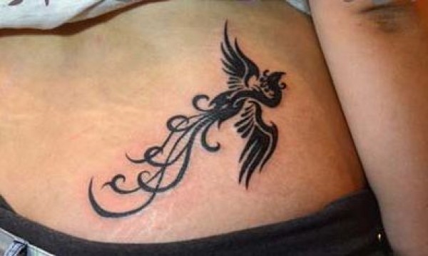 女孩子喜欢的腰部图腾凤凰纹身图案