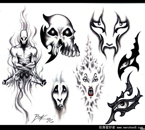 能面万媚纹身手稿_52张日式能剧面具纹身手稿图案素材欣赏