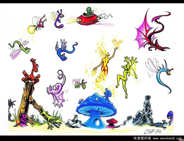 一组18张漂亮的欧美newschool动物纹身手稿图案