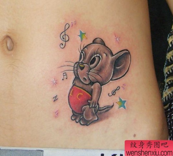 可爱的腹部卡通老鼠纹身图案