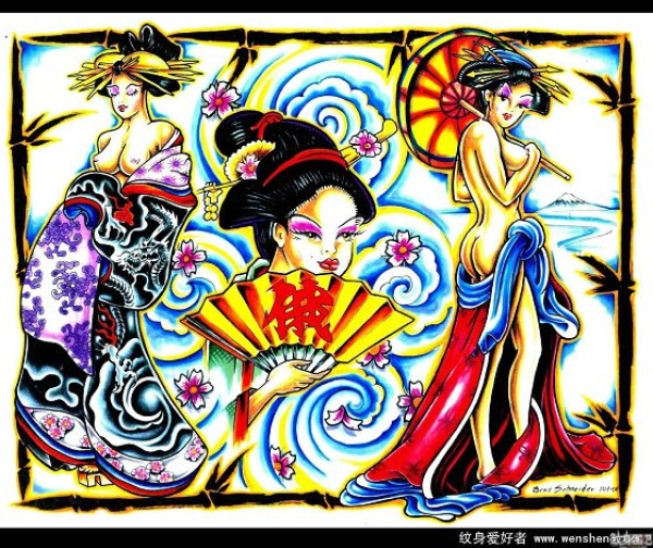 能面万媚纹身手稿_52张日式能剧面具纹身手稿图案素材欣赏