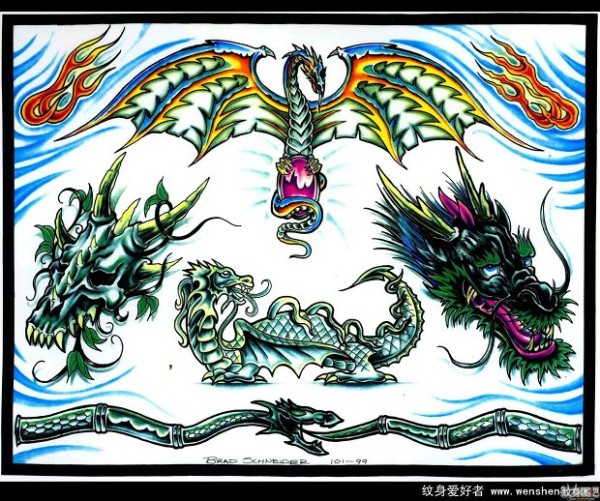 龙纹身手稿_一组老传统黑灰龙手稿纹身图案