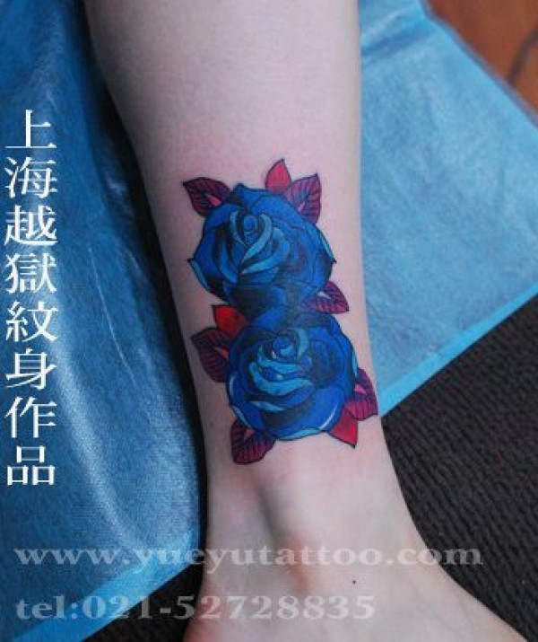 女孩子腿部欧美风格的玫瑰花纹身图案