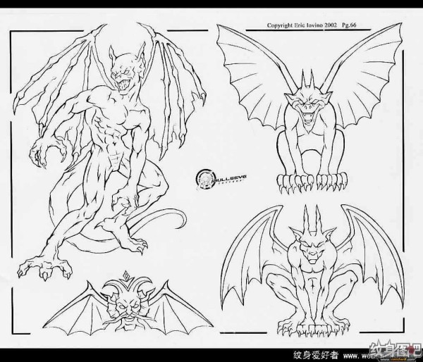 龙纹身手稿_一组老传统黑灰龙手稿纹身图案