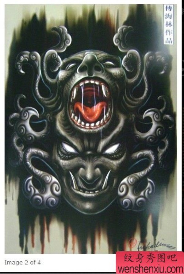 能面万媚纹身手稿_52张日式能剧面具纹身手稿图案素材欣赏