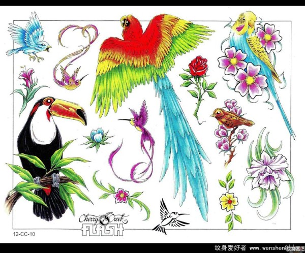 一组18张漂亮的欧美newschool动物纹身手稿图案