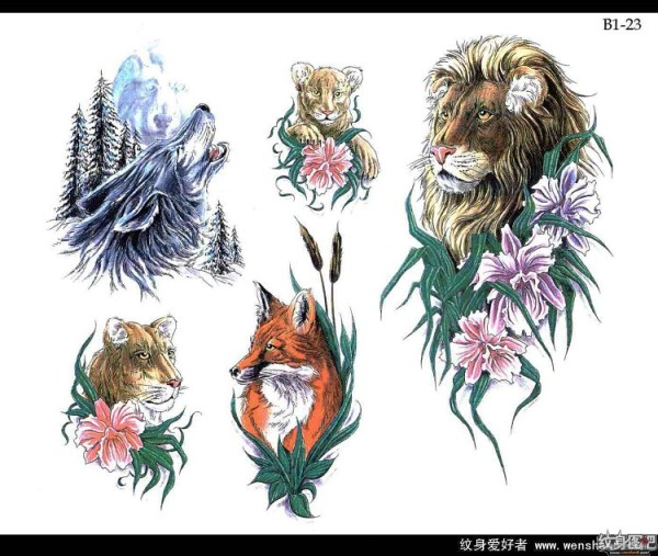 一组18张漂亮的欧美newschool动物纹身手稿图案