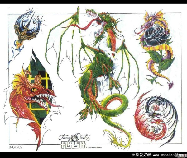 龙纹身手稿_一组老传统黑灰龙手稿纹身图案