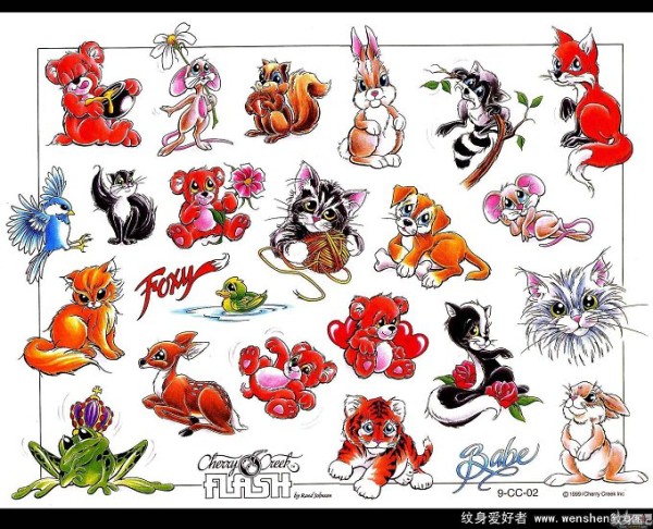 一组18张漂亮的欧美newschool动物纹身手稿图案