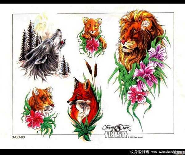 一组18张漂亮的欧美newschool动物纹身手稿图案