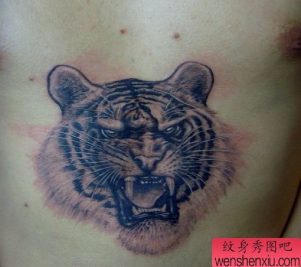 一张前胸霸气的虎头纹身图案
