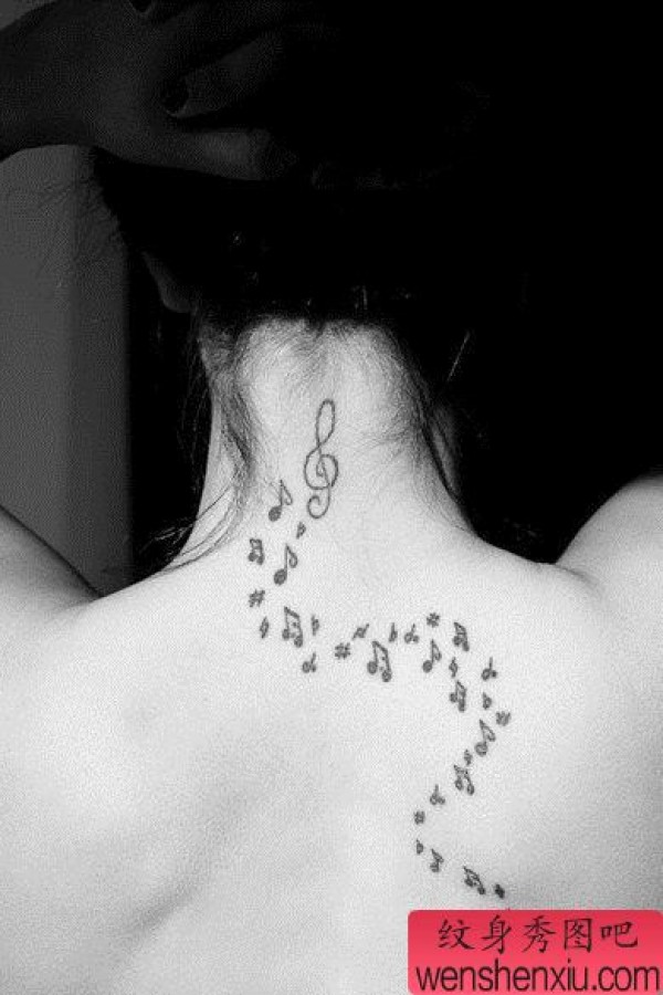 女孩子背部好看的音符纹身图案