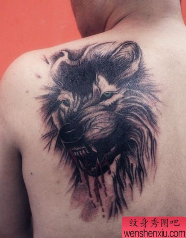 一张霸气凶悍的滴血狼头纹身图案