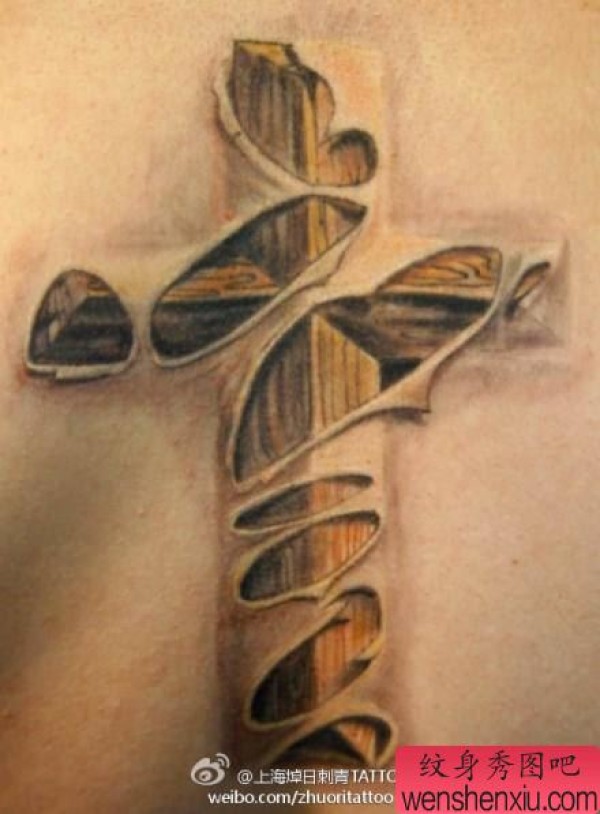 一张好看的撕皮十字架纹身图案