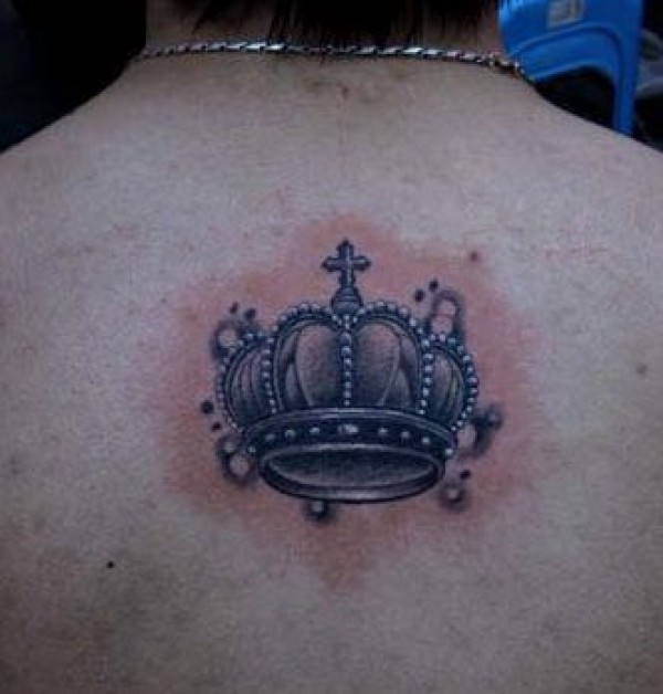 背部好看的黑灰皇冠纹身图案