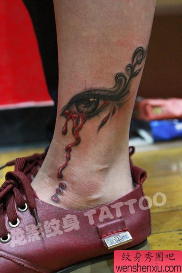 一张另类时尚的腿部流血的眼睛纹身图案