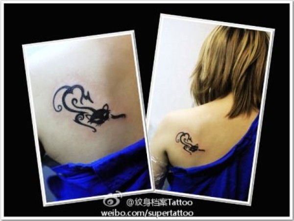 女孩子肩背好看时尚的图腾猫咪纹身图案