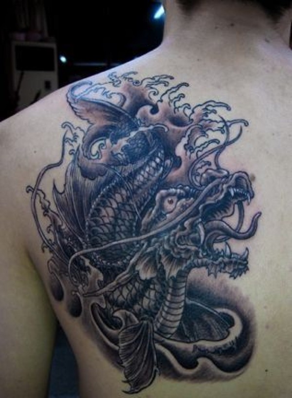 一张肩背帅气的鳌鱼纹身图案
