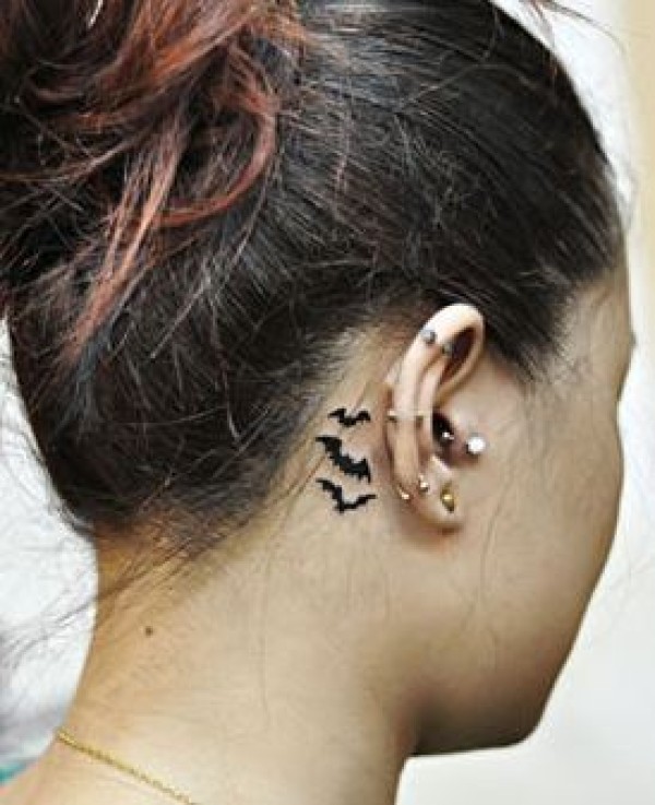 女孩子耳部图腾蝙蝠纹身图案