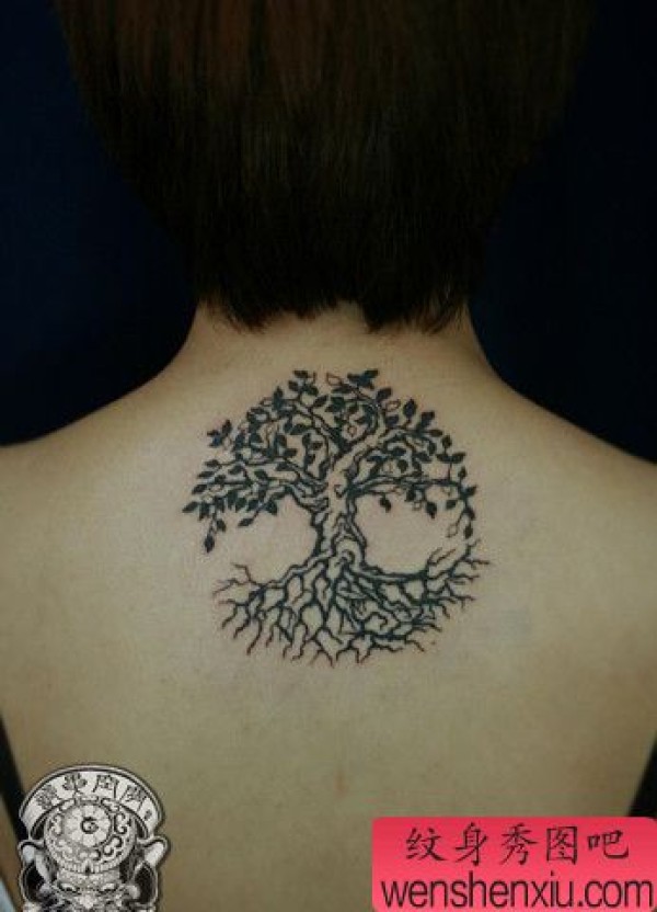 背部时尚时尚的图腾树纹身图案