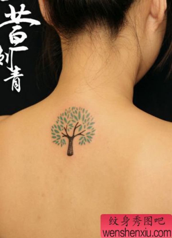 女孩子背部好看的图腾树纹身图案
