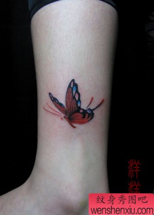 女生喜欢的腿部彩色蝴蝶纹身图案