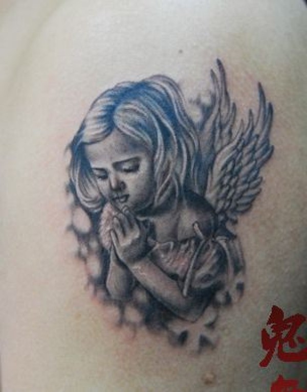 可爱的祈祷的小天使纹身图案