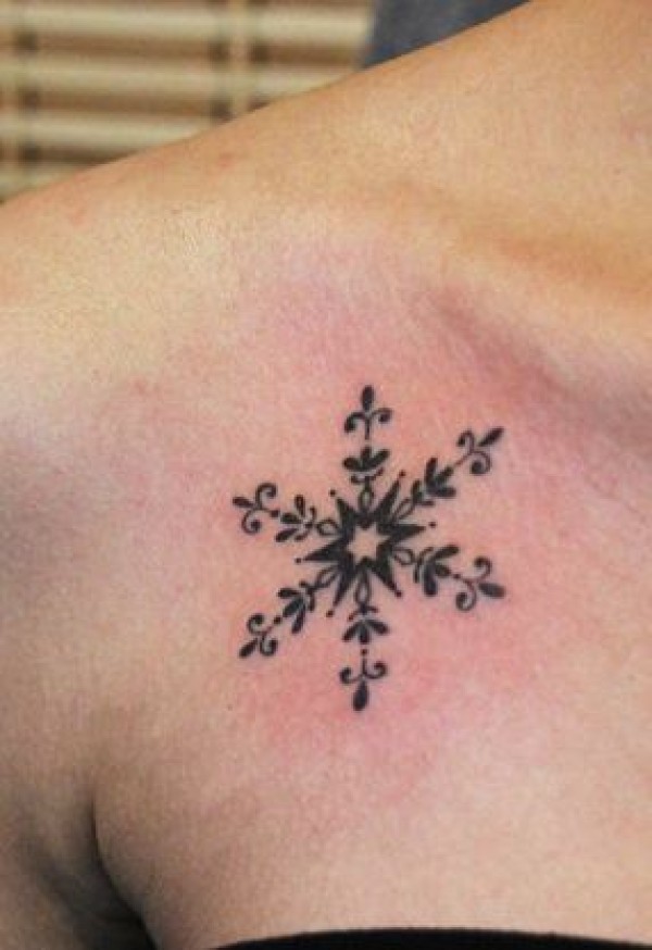 女孩子胸部雪花纹身图案