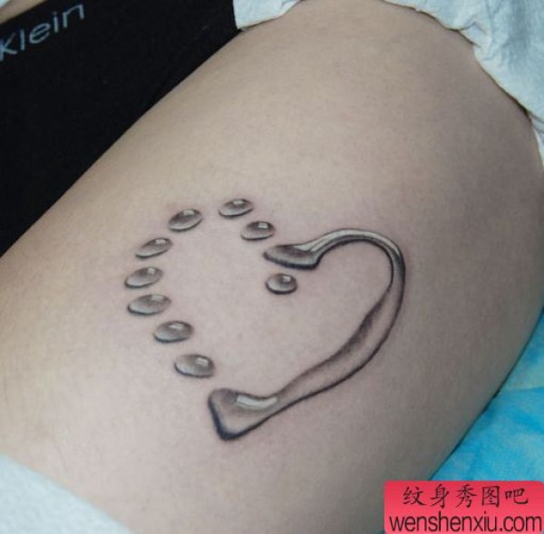女孩子腿部时尚好看的水滴爱心纹身图案