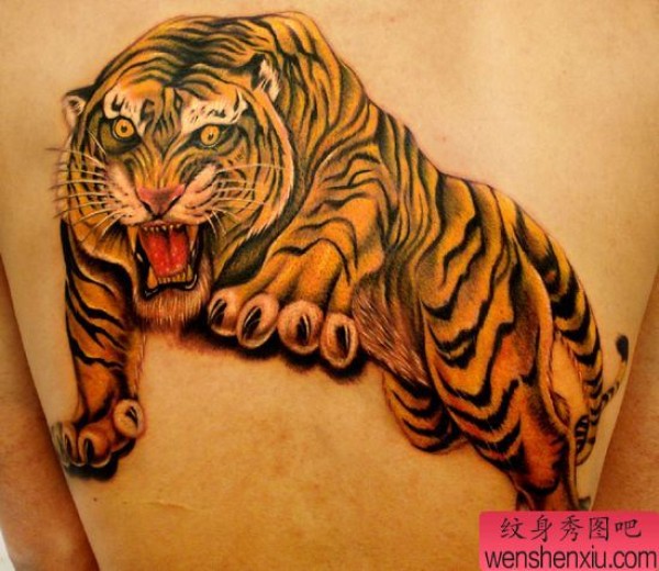背部霸气的彩色老虎纹身图案