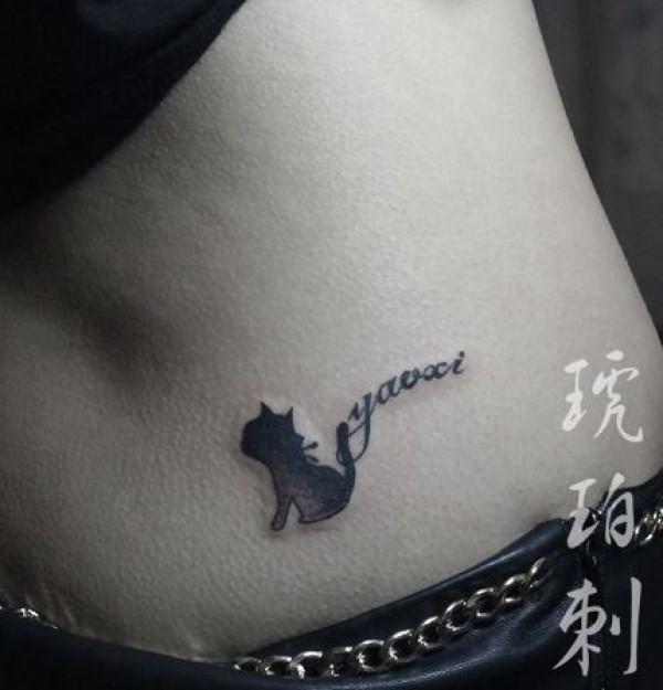 女孩子腰部时尚的猫咪纹身图案
