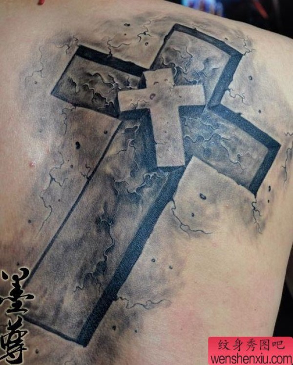 背部烙印地裂十字架纹身图案
