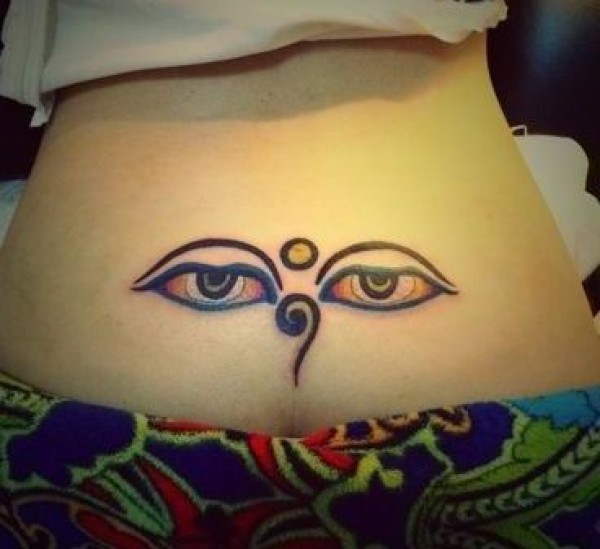 女孩子腰部佛眼纹身图案