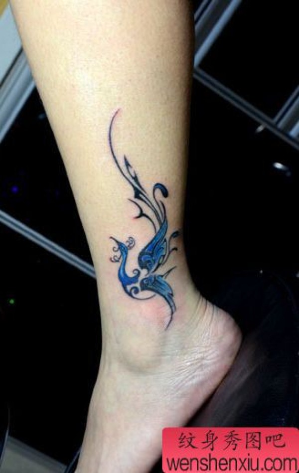 女孩子腿部好看的图腾凤凰纹身图案