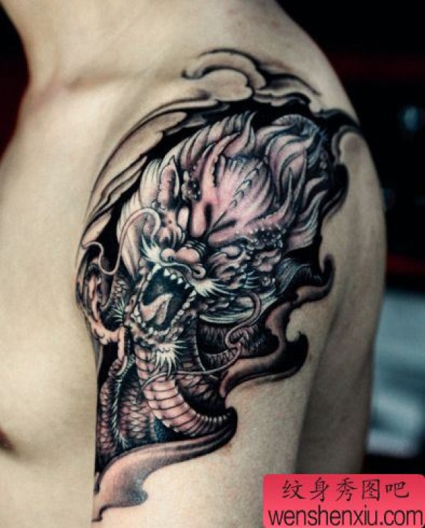 龙纹身手稿_一组老传统黑灰龙手稿纹身图案