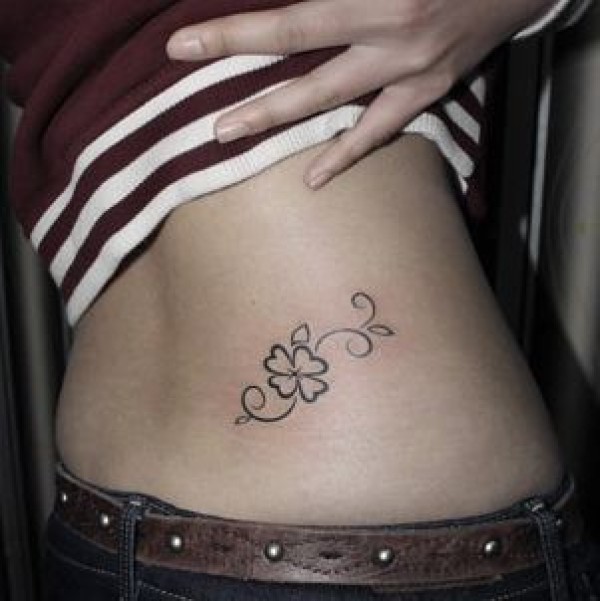 女生喜欢的腰部图腾四叶草藤蔓纹身图案