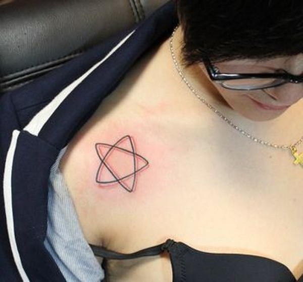 女孩子喜欢的肩部线条五芒星纹身图案