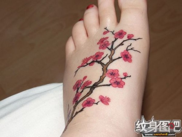 清新小桃花脚踝纹身_脚部纹身图案大全_纹身图吧