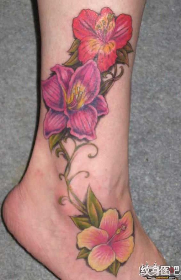 清新小桃花脚踝纹身_脚部纹身图案大全_纹身图吧