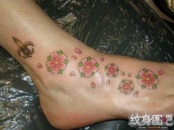 清新小桃花脚踝纹身_脚部纹身图案大全_纹身图吧