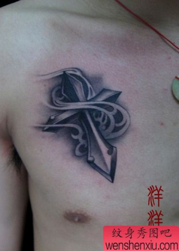 胸部好看时尚的十字架纹身图案
