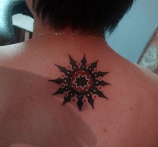 一张背部好看时尚的图腾太阳纹身图案