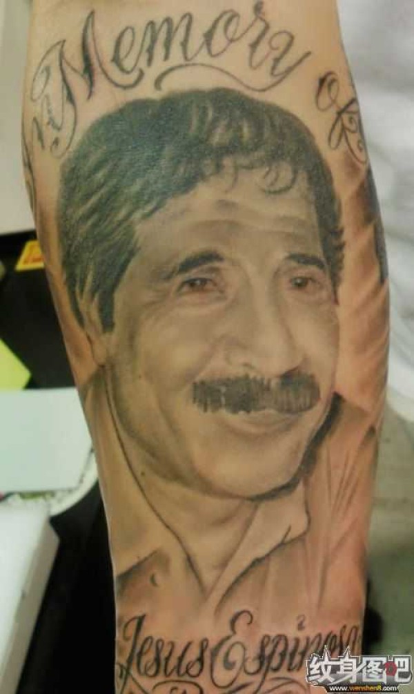 小腿上某位亲人的肖像纹身