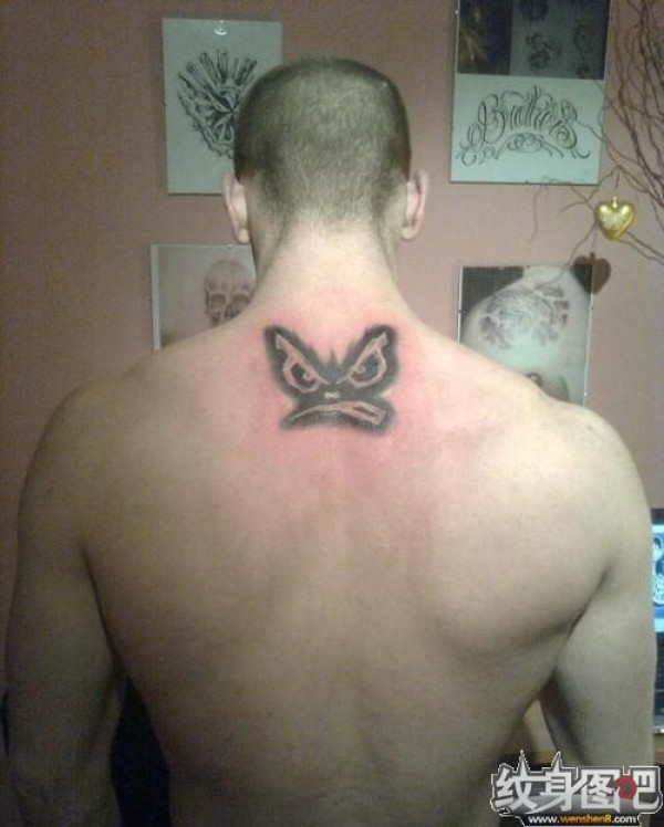 男子后背黑色人面图腾纹身