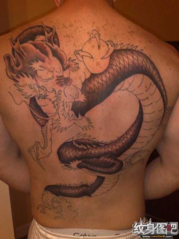 后背没有完成戏珠龙纹身