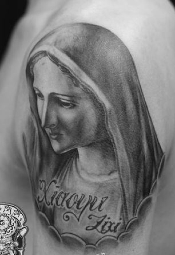 一张手臂圣母肖像纹身图案
