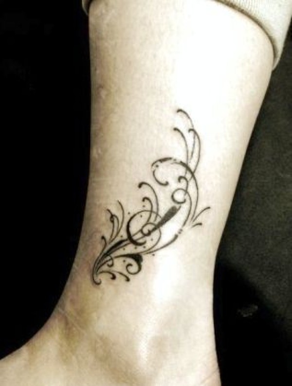 女孩子腿部图腾藤蔓纹身图案