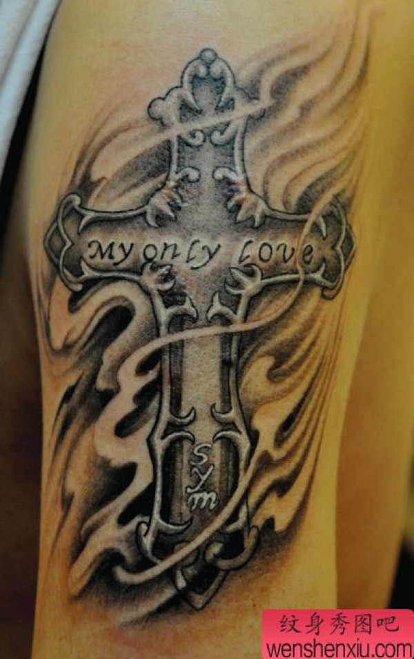 时尚精美的十字架火焰纹身图案