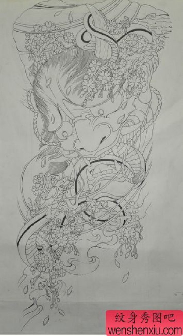 能面万媚纹身手稿_52张日式能剧面具纹身手稿图案素材欣赏